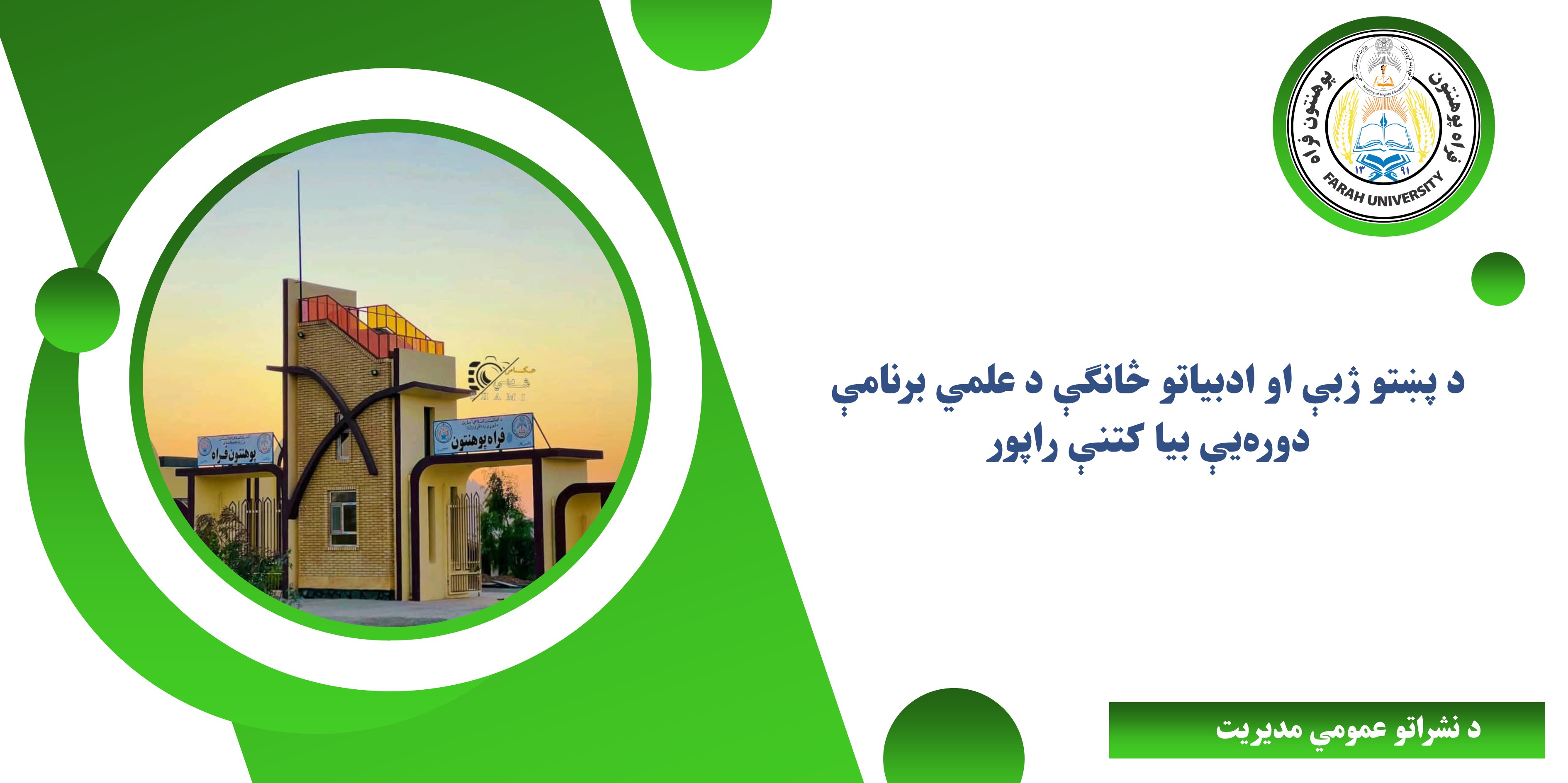 د افغانستان اسلامي امارت د موخو سرته رسیدنې اوکار و اهل کار ته د سپارل په پار، فراه د لوړو زده کړو مؤسسې خپل پينځه (۵) خالي بستونه د اداري کارکوونکو د ګمارنې په موخه د آزاده رقابت له . . .